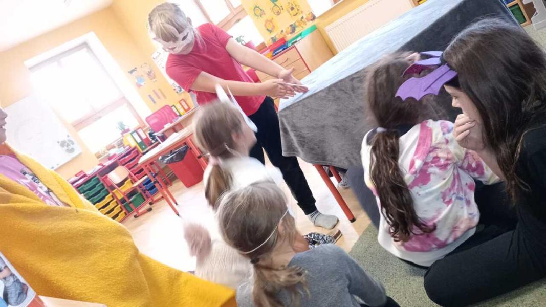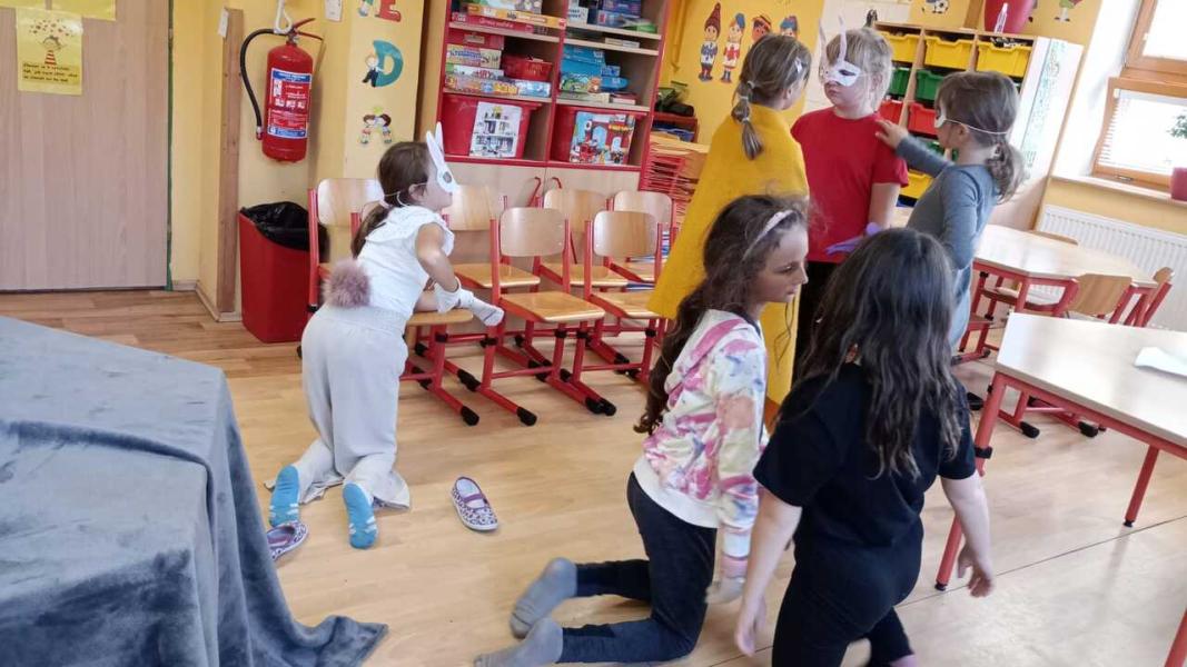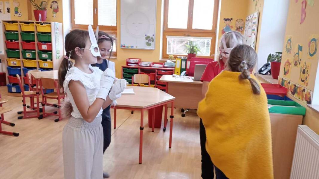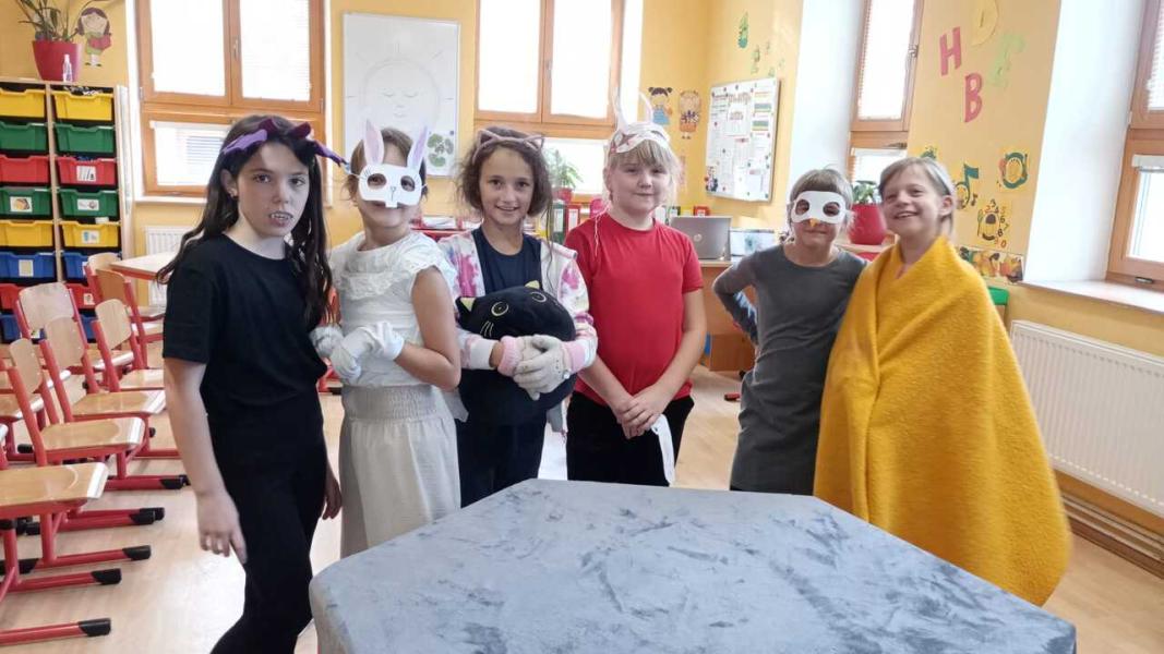 Děvčátka ze 3.třídy v malé družince zahrála divadlo, které si společně vymyslela. Superhrdinové a padouch. Foto LP