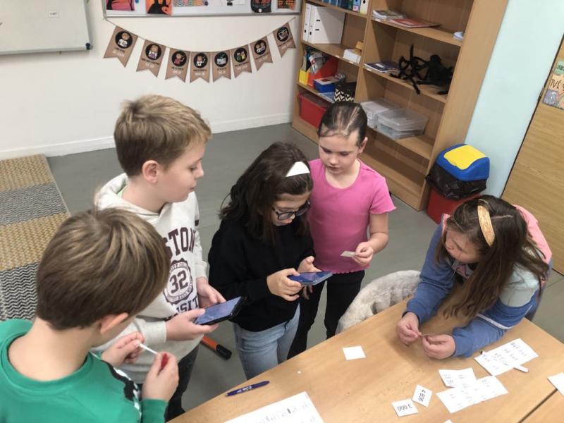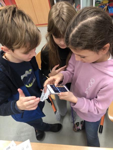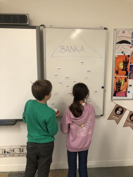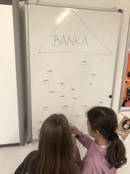 "Lupiči" - rozdělte si příklady, spočítejte, utíkejte pro lup do banky, spočítejte na kalkulačce a porovnejte výslednou částku se druhou skupinou. Foto IE