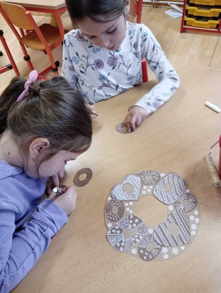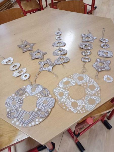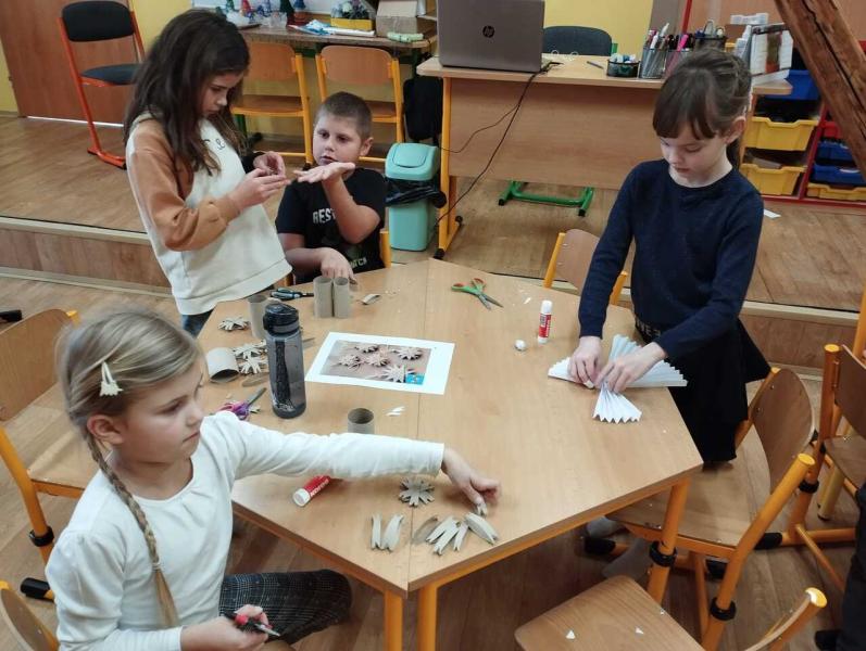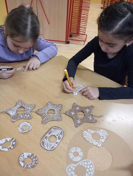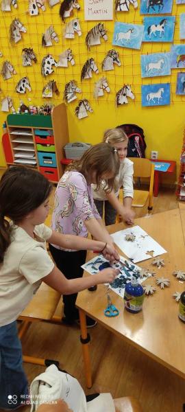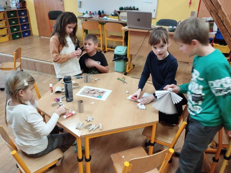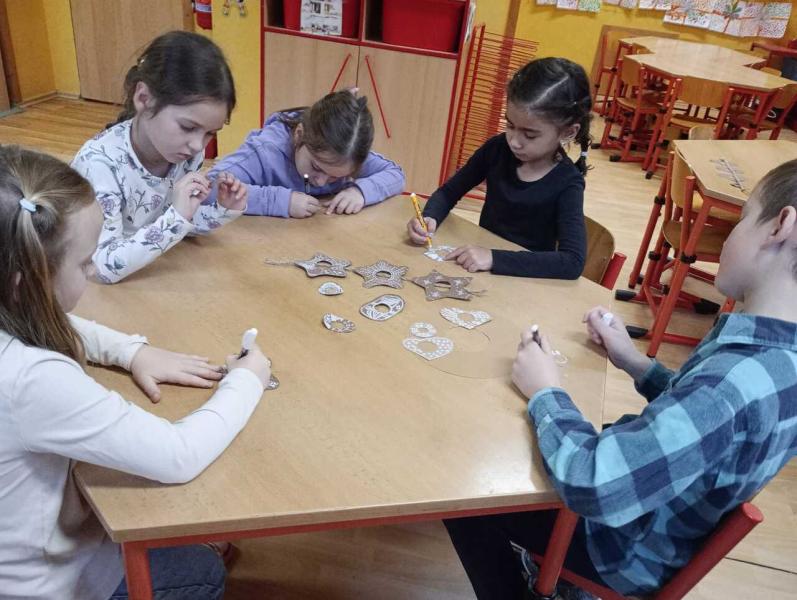 Děti v družinách vyráběly vánoční ozdoby na výzdobu chodby i čekárny transplantační jednotky kostní dřeně a dětské hematologie. Ozdoby se dětem moc povedly a byly poslány společnosti, která je Fakultní nemocnici v Motole předá. Foto JP, LP, JK