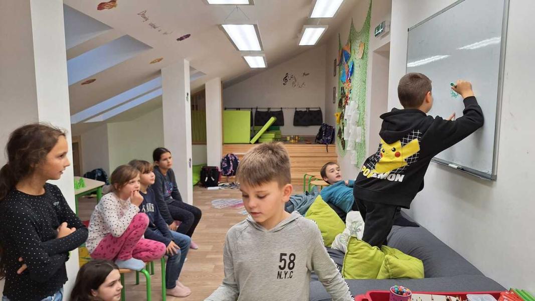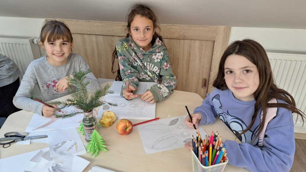 Tvořili jsme na vánoční jarmark, Kája nám ukázala, jak dělá stromečky z papíru. Cvičili jsme jógu pro děti a samozřejmě hráli spoustu různých her. Foto JP