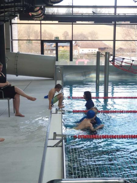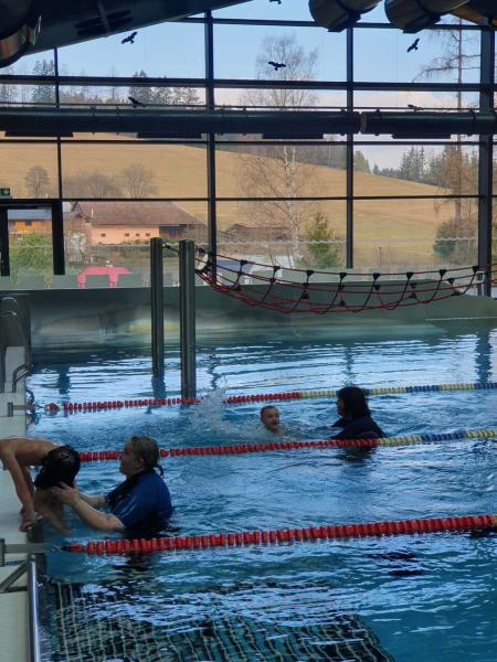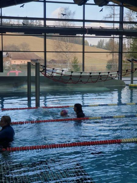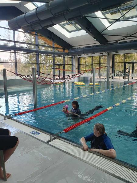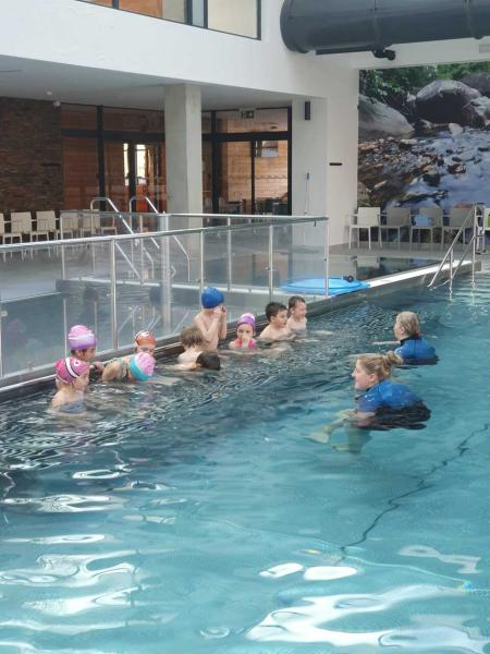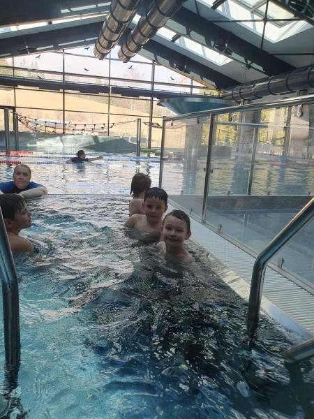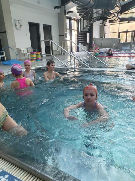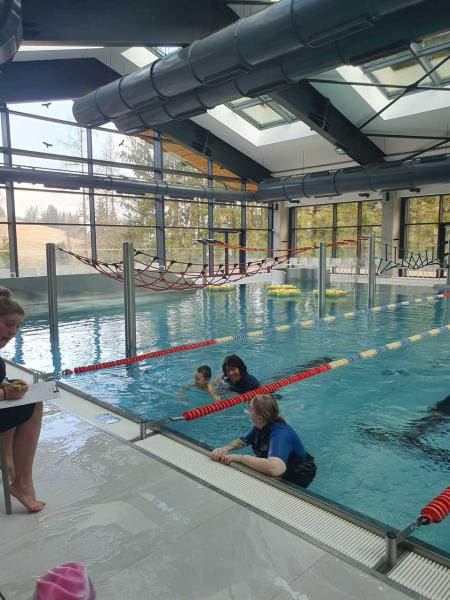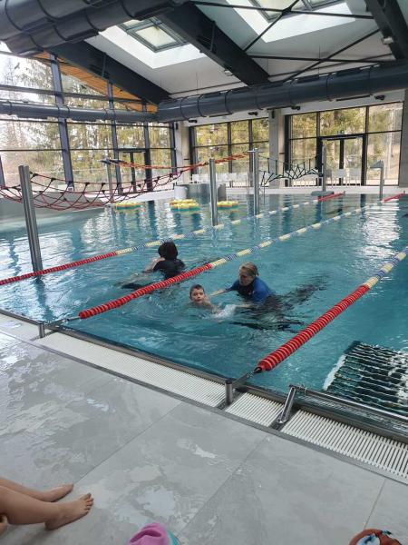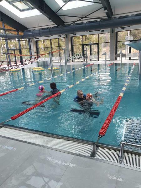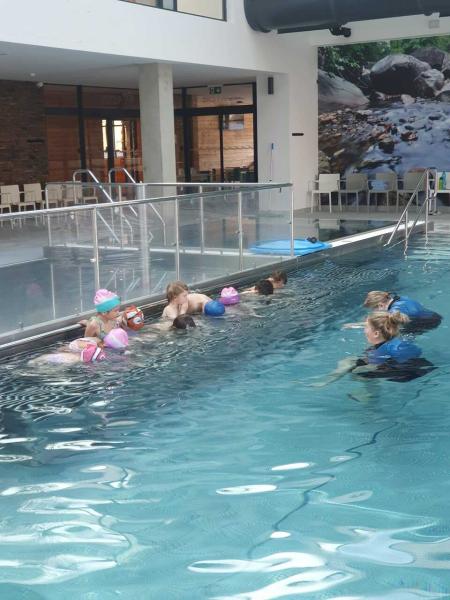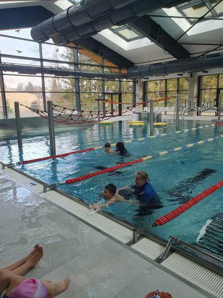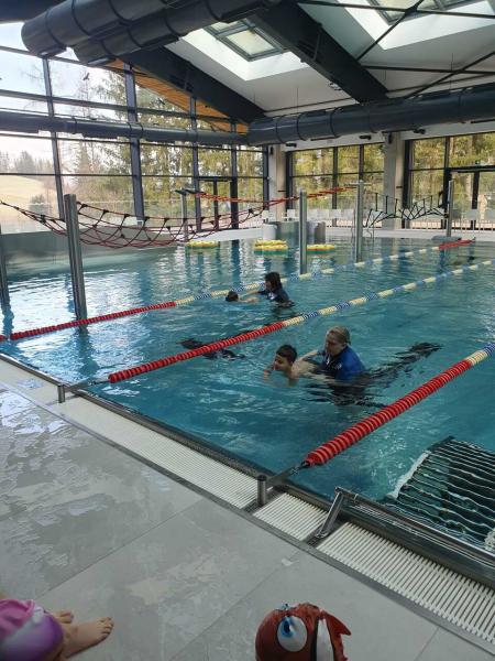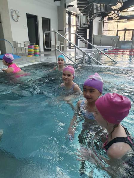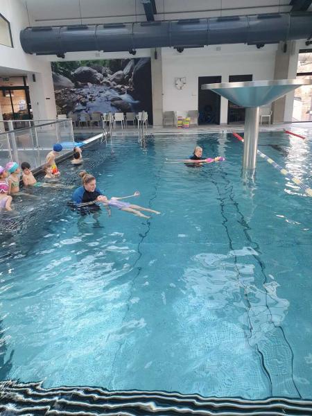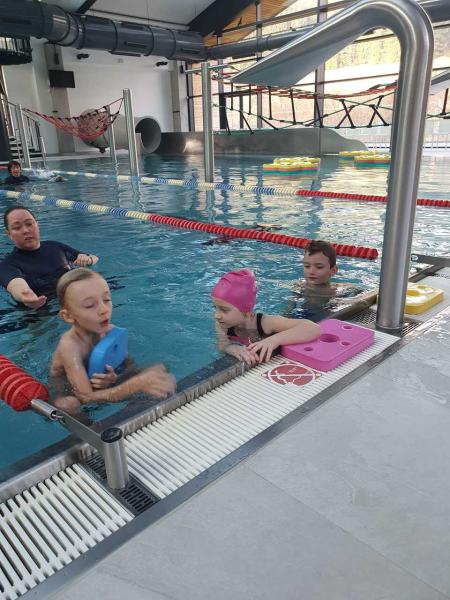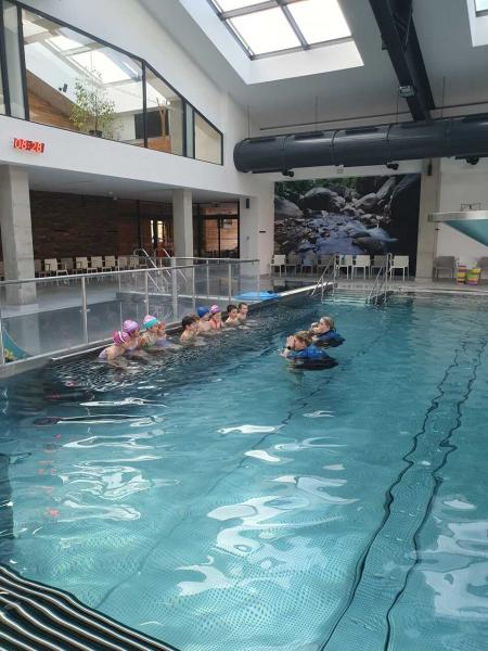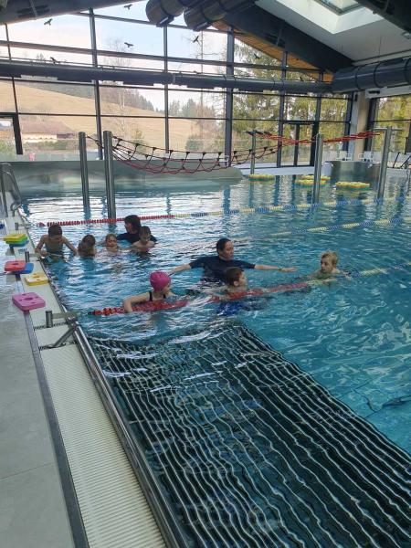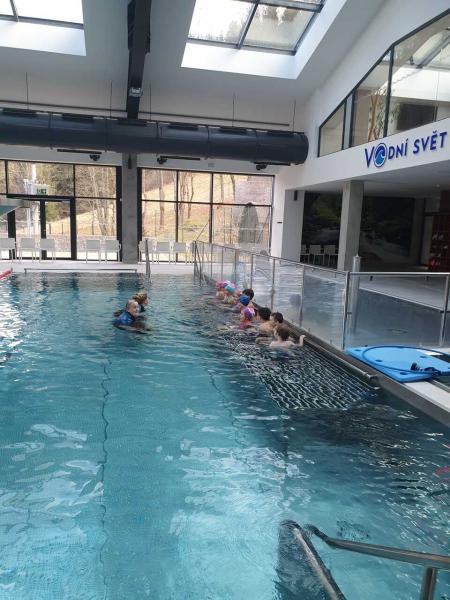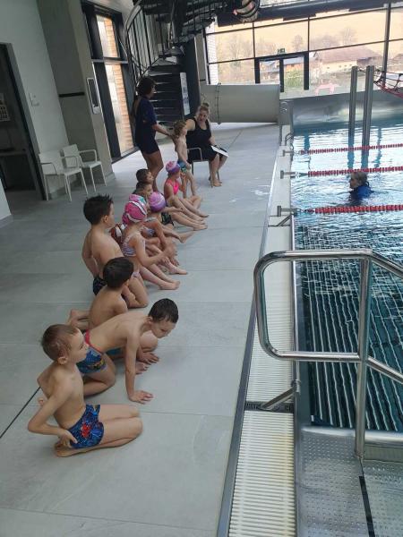 První lekce plavání probíhala ve stylu "ukaž,, co umíš" aneb rozřazování do družstev. I přes mírný stresík si to všichni moc užili!!! Foto MŠ