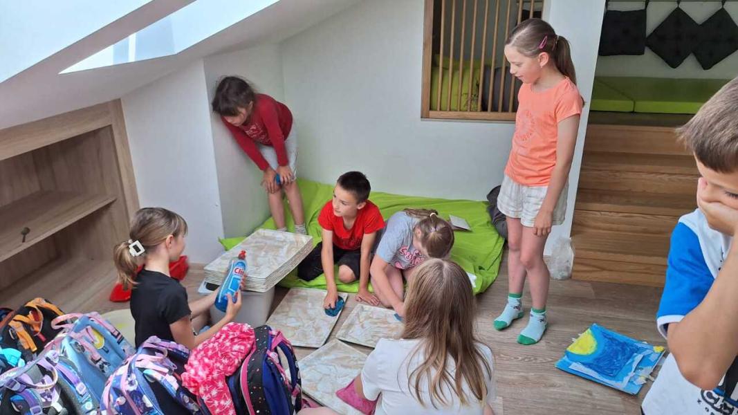 Děti tvořily z pěny na holení zmrzlinu. Z houbiček na nádobí jsme dělali zákusky a pak jsme si hráli na cukrárnu. Hráli jsme hry ve družině, na hřišti i v tělocvičně. Před prázdninami jsme si uklidili družinu. Text a foto JP
