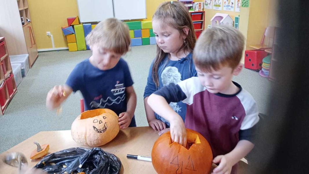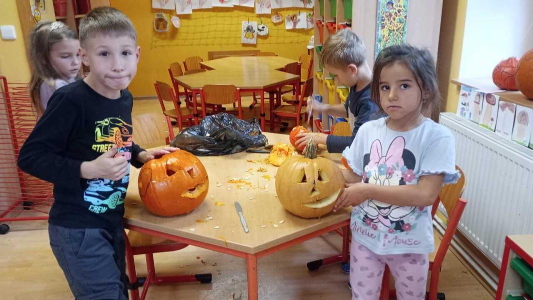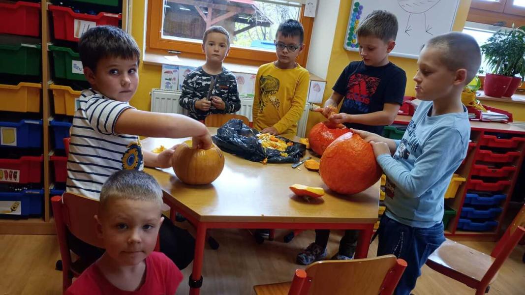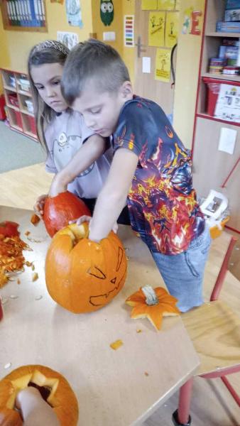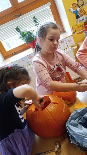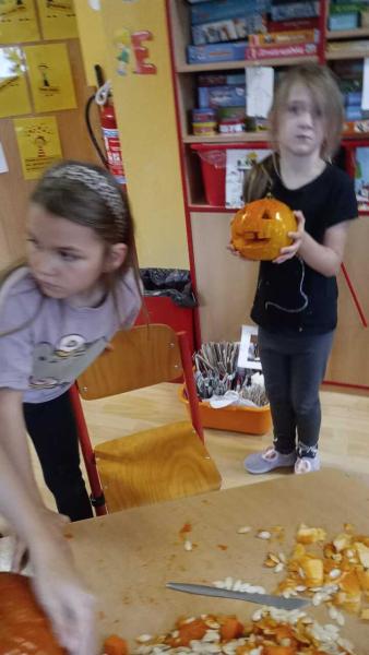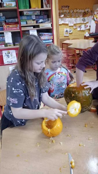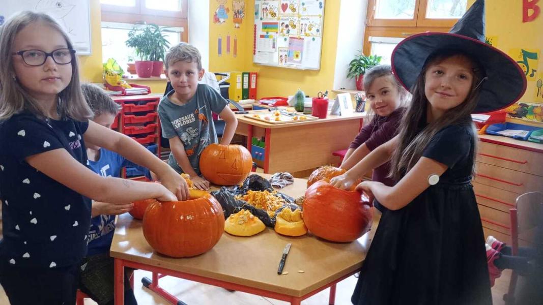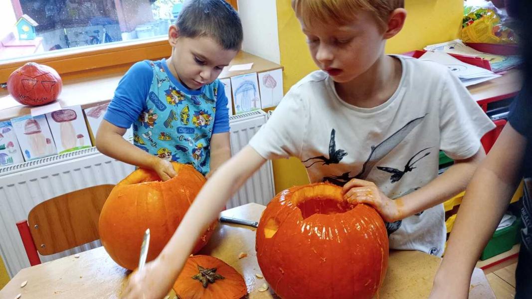 Odpoledne se moc vydařilo. Děti se potkaly ve skupinách. Dlabaly dýně, tvořily ozdoby a hrály hry v tělocvičně. Text a foto LP, TD.