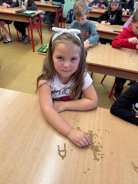Další měsíc je za námi, to to letí! Už umíme tři písmena a jsme na sebe moc pyšní. Tento měsíc jsme dostali nový koberec, na který se vejdeme úplně všichni... i když si lehneme! Je měkoučký a hned se stal naším oblíbeným místem na hraní i učení. Foto MČ