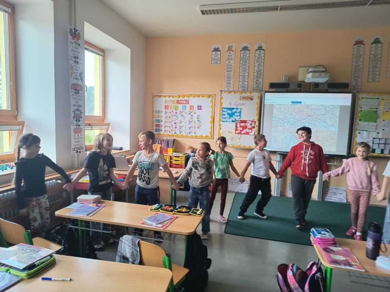 V hodinách prvouky využíváme prvky dramatické výchovy a učíme se s prožitkem. Zkoušeli jsme živé obrazy - rodinní příslušníci, hru v roli - nebezpečné osoby, se kterými se můžeme potkat a hru na řeku. Text a foto TS